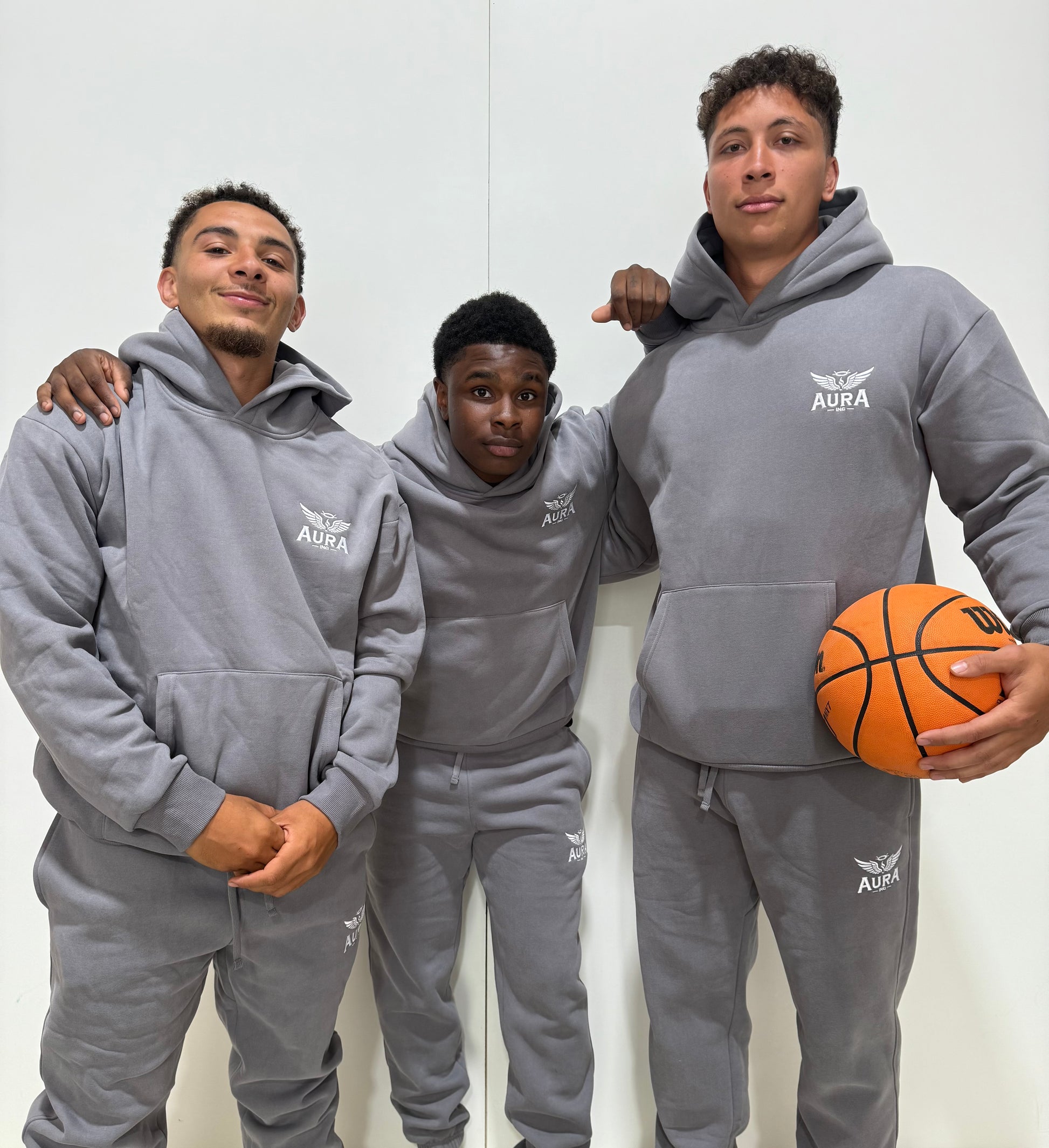Complete the look with the AURA Signature Joggers. Designed for comfort and style, these joggers are made from a soft, heavyweight cotton-polyester blend. Featuring an elastic waistband with adjustable drawstrings and the signature AURA logo, they deliver a clean, athletic fit perfect for training or casual wear.